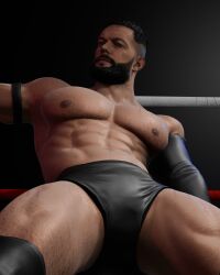 Tags: 1boy 3d 3d_(artwork) 3d_artwork abs big_pecs finn_balor gunnsteam irl_character male male_only nipples no_visible_genitalia real_person shiny_body six_pack solo solo_male sweat sweating wrestling_ring