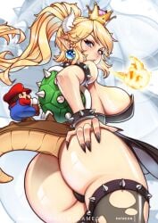 Tags: 1boy 1girl armlet ass ass_focus bare_arms bare_shoulders black_nails blonde_hair blue_eyes blue_overalls bowsette bracelet breasts breath_weapon breathing_fire brown_hair brown_shoes crown earrings facial_hair female fingernails fire from_behind giant giantess gloves hat high_ponytail horns jewelry large_breasts long_fingernails long_hair long_sleeves looking_at_viewer looking_back mario mario_(series) meme mikeymegamega moustache nail_polish new_super_mario_bros._u_deluxe overalls patreon_username pointy_ears ponytail princess red_hat red_shirt sharp_fingernails shiny_skin shirt shoes size_difference sphere_earrings spiked_armlet spiked_bracelet spiked_shell spiked_tail spiked_thighlet spikes super_crown tail thighlet turtle_shell white_gloves